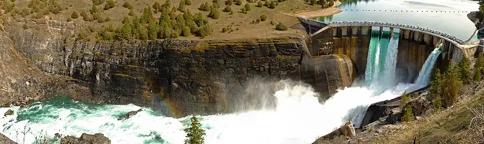 Séliš Ksanka Ql'ispé Dam, formerly known as Kerr Dam, was completed in 1938 and dams the Flathead River a few miles below Flathead Lake southwest of Polson, Montana (2017)
