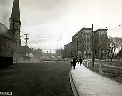 Along Elgin Street, the location was occupied by the Roxborough Apartments, a luxury apartment complex that had once been home to many Ottawa elites, such as Prime Ministers William Lyon Mackenzie King and Louis St. Laurent. As part of the 1949 Greber Plan, the site was to be cleared for a "Confederation Park" along the Canal from Laurier Avenue to Wellington Street surrounded by public buildings.[7] The apartments and a number of buildings were expropriated and demolished by the federal government to build a "National Museum of Science" in 1965. The area north of the Mackenzie King bridge had already been cleared as part of the building of Confederation Square. That section was ultimately used for the construction of the National Arts Centre. In 1967, the Museum site was converted to parkland, to commemorate the Canadian Centennial (the 100th anniversary of Canadian Confederation).
