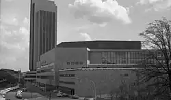 After the building was opened, it was expanded multiple times to increase its capacity.[4] Initially, this was controversial as the space intruded on the adjacent park.[1] In 2000, the foyer and restaurant annex was overhauled, and in 2006, Hall H was opened, adding a roof garden to the complex.[4][5][6]