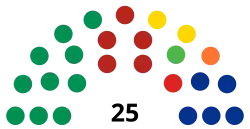 | 16 with first-past-the-post and 9 with proportional representation[2] | |