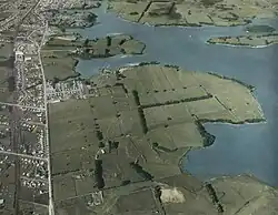 During much of the early 20th century, the area was the location of the Streven family farm.[4] The farm, previously Manukau Golf Course, is now the Waiata Shores subdivision. The names Walter Strevens Drive and Walter Strevens reserve come from the name of the patriarch of that family at the time it was sold - Walter John Strevens. In January 1974, 1,000 acres (400 ha) of the farm was developed into suburban housing,[4] developed as an upmarket "environmental subdivision".[8] Fraser Thomas were commissioned to design the subdivision and to manage its construction. Fraser Thomas were awarded Certificates of Merit by both the Association of Consulting Engineers NZ and the New Zealand Institute of Surveyors.[9]