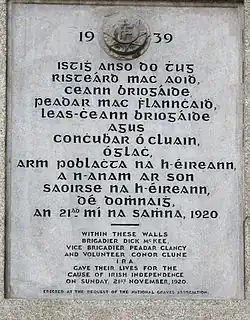 According to author Seán O'Mahony, the three were tortured in the guardroom to extort from them the names of the volunteers who had earlier that morning shot dead most of the "Cairo Gang". Refusing to talk, they were "subsequently murdered" on the evening of 21 November 1920.[2][12]