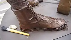- Bronze sculptures: For many bronze sculptures and other metal sculptures, treatment includes a reduction buildup from previous protective coatings, removal of corrosion and incrustation, or cleaning. This may be done by hand, water blasting, air abrasion, or other methods. Then, a wax or wax composite is applied to the sculpture in sweeping motions. Finally, the wax is buffed with a cotton cloth.[6]