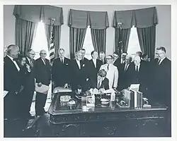 The S. 1643 legislation was signed into law by the thirty-fifth President of the United States John F. Kennedy on August 8, 1961.[1][2]