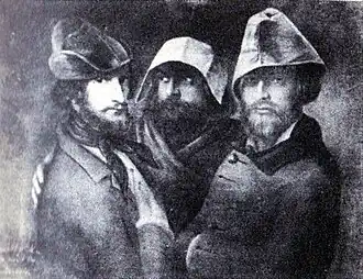 His plan was divulged by spies of the Second French Republic (already under the authority of Prince-President Louis-Napoléon Bonaparte), who read Rosenthal's correspondence in Paris; the Austrians arrested the painter during his presence in Pest-Buda, citing his "imprudent political statements".[10] Pressured to reveal his connections and refusing to comply, Rosenthal was tortured to death; his body was never returned to his family.[11]