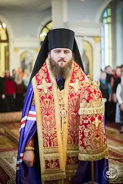 On August 12, 2012, in the newly consecrated Church of the Three Holy Hierarchs at the Kolomna Theological Seminary, he was consecrated Bishop of Zaraisk, vicar of the Moscow Oblast Diocese. The consecration was performed by: Patriarch Kirill of Moscow and All Russia, Metropolitan Juvenal (Poyarkov) of Krutitsy and Kolomna, Metropolitan Barsanuphius (Sudakov) of Saransk and Mordovia, Archbishop Gregory (Chirkov) of Mozhaisk, Archbishop Eugene (Reshetnikov) of Vereya, Bishop Sergius (Chashin) of Solnechnogorsk.[10]