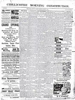![]() January 21, 1890, front page of Chillicothe Morning Constitution | |