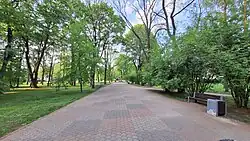 In May 1919, the Białystok city hall decided to name part of the Zwierzynicki Forest to 3rd May Constitution Park. It covered the area between Wołodyjowskiego, Zwierzyniecka and Podlesna streets. In 1924, work began in the park to mark out 11 Listopada Avenue and prepare for the construction of a sports field, the grand opening of which took place in 1926. First, oak trees were planted there, later a small monument in the shape of a pyramid was built.[3] Despite these works, the park itself was neglected, and the city's residents did not treat it as a place for relaxation and walks. In 1928, the Białystok City Council was even forced to issue a regulation prohibiting hunting birds that flocked to the park. This was due to complaints that the park was impossible to pass through due to the annoying stench of carrion, i.e. ravens shot by "hunters".[4]