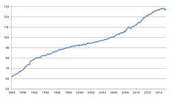 The index is calculated and published by the Hellenic Statistical Authority, by using a variation of the Laspeures index.[15] Until 2000, the index used to take into consideration only urban areas.[16]