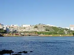 Filming moved once again in January 2011 to the Druid Hills quadrant of Atlanta, which contains the headquarters of the Centers for Disease Control and Prevention. The restricted nature of the CDC campus meant that producers were only allowed to shoot exterior scenes of the area, as well as within the parking garage and reception area for the CDC's museum onsite.[17] Principal photography then proceeded into Atlanta's central business district and Decatur,[17] before advancing to London, Geneva, and lastly San Francisco, California, in the ensuing month.[18] The San Francisco Film Commission charged filmmakers $300 per day for production within the city limits.[18] In the North Beach and Potrero Hill sections of the city, production designer Howard Cummings scattered trash and discarded clothing on the ground to depict the rapid decline of civilization.[5] For the Civic Center set, over 2,000 extras were sought for in background roles; actors who were a part of the Screen Actors Guild were paid $139 per day, while nonunion workers received $64 per day for their work.[19] Other filming locations were established at Golden Gate Park, Chinatown, and Candlestick Park; it cost $60,000 to rent the football stadium for six days.[5][18] Genentech Hall at the University of California, San Francisco Mission Bay campus was used for filming also, renamed Mendel Hall for the occasion.[20]