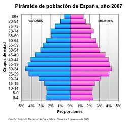 - ^ España en medio siglo será un país de viejos y solitarios, EFE, 20/10/2016. INE press release, 20/10/2016: "Population Projections 2016–2066 – If current demographic trends were to continue, Spain would lose just over half a million inhabitants in the next 15 years and 5.4 million by 2066 – The percentage of the population aged 65 and over, which currently stands at 18.7%, would reach 25.6% in 2031 and 34.6% in 2066 – Comunidad de Madrid, Canarias, Illes Balears, Región de Murcia and Cataluña are the only communities that would gain population in the next 15 years". INE press release, 30 June 2016: "Cifras de Población 1-1-2016, Estadística Migraciones 2015 (provisionales) – Cifras de Población a 1 de enero de 2016 – Estadística de Migraciones 2015 – Adquisiciones de Nacionalidad Española de Residentes 2015 – Datos Provisionales."