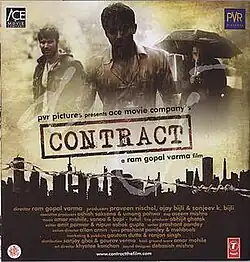 Contract is a 2008 Indian Hindi-language action drama film[1] written by Prashant Pandey and directed by Ram Gopal Varma. The film is set against the backdrop of terrorism and the infiltration by R.A.W. and the Intelligence Bureau.[2]