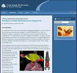- ^ Cook Islands News. "Biodiversity database redesigned Website". Retrieved 6 November 2014.