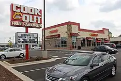 Cook Out is a privately owned American fast-food restaurant chain operating in North Carolina, South Carolina, Alabama, Florida, Georgia, Kentucky, Maryland, Mississippi, Tennessee, Virginia, and West Virginia. Founded in Greensboro, North Carolina, in 1989,[2] the chain has since expanded and now has restaurants in over 100 cities. The chain itself has grown in size with many locations now spread primarily throughout the Southeastern United States.[3]