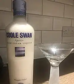 Coole Swan Irish Cream Liqueur is an Irish cream produced from a blend of a single-malt Irish whiskey, Belgian white chocolate, and fresh cream.[1] Its alcohol content is 16 percent by volume. Made in Ireland, Coole Swan has headquarters on the owners' family farm in County Meath[2] and is bottled in Bailieborough, County Cavan.[3]