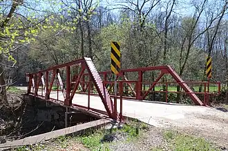 The Coon Creek Bridge is a historic bridge in rural western Benton County, Arkansas. The bridge carries County Road 24 (Coon Hollow Road) across Coon Creek between Decatur and the Oklahoma state line. It is a single-span Warren pony truss bridge, with a span of 57 feet (17 m), that rests on concrete abutments. It was built in 1930 and underwent major rehabilitation in 1975.[2]