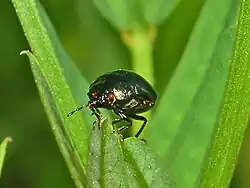 Coptosoma elegans is a species belonging to the family Plataspidae, subfamily Plataspinae. It is often confused for a beetle due to its appearance, but it is a true bug.