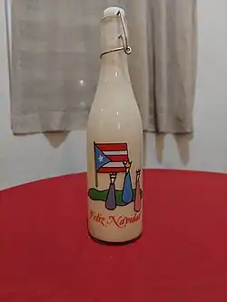 The Puerto Rican version resembles eggnog and is usually served after dinner in a shot glass. Some prepare the drink with eggs. The drink is known to be sweet and strong, with a generous amount of rum.[1][5]