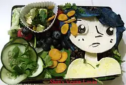 Coraline is a feminine given name, usually considered a French diminutive of the name Coral, which is derived from the name for the precious coral used to make jewelry. It was first used by French composer Adolphe Adam for a character in his 1849 comic opera Le toréador. As a diminutive of Coral, the name is traditionally pronounced with an een ending.[1] It might also be a diminutive of the name Cora.[2] Coraline is also a name for a red, pink, or orange shade of the color coral.[3] Author Neil Gaiman believed that he had invented the name as a rhyming variant of the name Caroline for the title character in his dark fantasy horror children's novella Coraline. Gaiman pronounced the name of the character with a long i to rhyme with the word wine. Gaiman also liked the name's resemblance to the word coral, which he explained is "both beautiful and hard and hidden." He also later found the name had been used for a tragic heroine in a Victorian-era song as well as for a type of material used to make corsets.[4][5]
