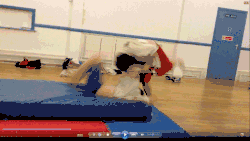 - With both hips now facing the same direction, the thrower lifts the throwee with their legs and flips the throwee head over heels over their shoulder.