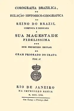 1. ^ "Manuel Aires de Casal (1754-1821) - Corografia Brazilica, ou, Relacao historico-geografica do reino do Brazil...; v. 1". www.rct.uk. Retrieved 2025-04-10.