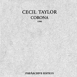 Corona is a live album by Cecil Taylor recorded during the "Total Music Meeting" at the "Podewil", the headquarters of the Kulturprojekte Berlin non-profit organisation, on November 1, 1996, one day before the recording of the Taylor album Almeda, and two days before the recording of The Light of Corona. It was released in 2018 in digital format by the FMP label as part of their Archive Edition,[1] and was reissued in 2021 in CD format by Corbett vs. Dempsey.[2]