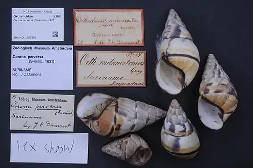 Corona is a genus of air-breathing land snails, terrestrial pulmonate gastropod mollusks in the family Orthalicidae.