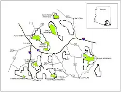 It is located in parts of Cochise, Graham, Santa Cruz, Pima, and Pinal Counties in Arizona, and Hidalgo County in New Mexico.