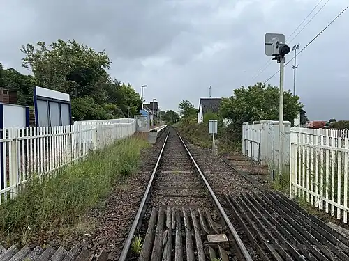 The station was host to a LNER camping coach from 1936 to 1939.[5] A camping coach was also positioned here by the Scottish Region from 1961 to 1969, the coach was a Pullman camping coach until 1964 and a standard one thereafter, all camping coaches in the region were withdrawn at the end of the 1969 season.[6]