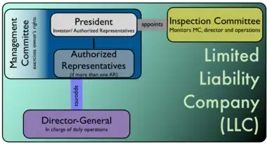 The management structure consists of a Members' Council (MC), Chairperson of the MC and Director. Where there are more than 11 members in LLC, an Inspection Committee (IC) must also be established.[14]