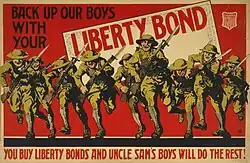 The first users of propaganda in the US was the government. President Woodrow Wilson needed a way to persuade the American people to support US involvement in World War I. The CPI recruited famous American artists, filmmakers, and writers to make pro-war products and advertisements. Newspapers and magazines printed advertisements urging that it was the American citizen's duty to buy war bonds and stamps to support the war efforts.[5]
