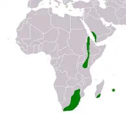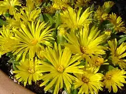 Delosperma ('delos'=evident, 'sperma'=seed) is a genus of around 170 species of succulent plants, formerly included in Mesembryanthemum in the family Aizoaceae. It was defined by English botanist N. E. Brown in 1925.[2] The genus is common in southern and eastern Africa, with a few species in Madagascar, Reunion island, Yemen and Saudi Arabia.[3][4] Delosperma species, as do most Aizoaceae, have hygrochastic capsules, opening and closing as they wet and dry.[5]