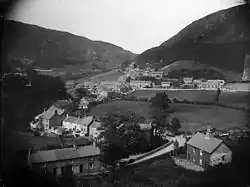 Corris is a village in the county of Gwynedd, Wales, about 4.5 miles (7 km) north of the town of Machynlleth. The village lies on the west bank of the Afon Dulas (which here forms the boundary with Powys), around that river's confluence with the Afon Deri. Corris railway station is the headquarters and museum of the Corris Railway, a preserved narrow gauge railway.