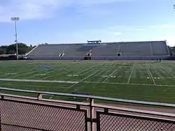 The SMC Pavilion, a hardwood-floor gymnasium (capacity 1,200), is attached to the east-side stands and houses locker rooms for both home and visiting teams, plus rooms for officials. There is also a weight- training facility and meeting rooms.[2]