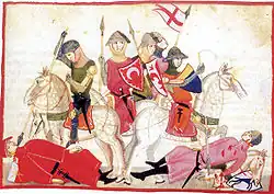In the late thirteenth century, power in Florence and the other Tuscan cities was divided between the Podestà, an outsider who served as chief magistrate, and the guildmasters. Corso served as Podestà of Bologna in 1283 and 1288, and of Pistoia in 1289. In 1289, as captain of the people in Pistoia, he led a group of soldiers in a cavalry charge at the Battle of Campaldino, in which the Guelphs defeated the Ghibellines and cemented their control over Florence.[1]