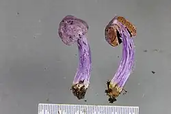 - ^ a b c d e Nilsen AR, Wang XY, Soop K, Cooper JA, Ridley GS, Wallace M, et al. (2020-05-03). "Purple haze: Cryptic purple sequestrate Cortinarius in New Zealand". Mycologia. 112 (3): 588–605. doi:10.1080/00275514.2020.1730120. PMID 32315246. S2CID 216072809.