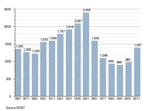 - ^ "Superficie di Comuni Province e Regioni italiane al 9 ottobre 2011". Italian National Institute of Statistics. Retrieved 16 March 2019.