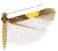 Female. Forewing length 4.0 mm. Head: frons shining ochreous-grey with greenish and reddish and reflections, vertex and neck tufts dark bronze brown with reddish gloss, collar dark bronze brown; labial palpus first segment very short, ochreous-grey, second segment three-quarters of the length of third, dark brown with white longitudinal lines laterally and ventrally, third segment white, lined dark brown laterally; scape dorsally shining dark brown with a white anterior line, ventrally shining white, antenna shining dark brown with a white line from base to beyond one-half, interrupted in middle, followed towards apex by five dark brown segments, six white, two dark brown, two white, ten dark brown and eight white segments at apex. Thorax and tegulae shining dark bronze brown with reddish gloss. Legs: dark brown with reddish gloss, femora of midleg and hindleg shining ochreous-grey, foreleg with a white line on tibia and tarsal segments one and two, segment four with white apical spot, segment five entirely white, tibia of midleg with white oblique basal and medial lines and a white apical ring, tarsal segments one, two and four with white apical rings, segment five entirely white, tibia of hindleg with a white oblique medial line and a white apical ring, tarsal segment one with a white basal spot and an ochreous apical ring, segments two and three with ochreous apical rings, segment four dorsally and segment five entirely ochreous-white, spurs white, ventrally greyish brown. Forewing dark bronze brown with reddish gloss, three white lines in the basal area, a subcostal from base to one-quarter, slightly bending from costa in distal half, a short medial above fold, ending just beyond the subcostal, a subdorsal below fold, about as long as the medial, but slightly further from base, some indistinct white edging on dorsum beyond base, and sometimes an indistinct and very narrow short costal just before the transverse fascia, but not connected with it, a broad yellow transverse fascia beyond the middle with a very small and narrow apical protrusion, bordered at inner edge by two pale golden metallic tubercular subcostal and subdorsal spots the subcostal spot outwardly edged by a small patch of blackish brown scales, the subdorsal spot slightly further from base and a little larger than the costal, bordered at the outer edge by two similarly coloured costal and dorsal spots, the dorsal spot three times as large as the costal and more towards base, both spots inwardly partly lined dark brown, a white costal streak from outer costal spot, a narrow apical line from or just beyond the apical protrusion, slightly widening towards apex, cilia dark brown around apex, paler towards dorsum. Hindwing shining dark greyish brown. Underside: forewing shining greyish brown, the white streak in the apical cilia distinctly visible, hindwing shining greyish brown. Abdomen dorsally greyish brown, mixed orange, segments banded greyish brown posteriorly, laterally greyish brown, ventrally shining dark grey, segments banded shining white posteriorly, anal tuft brownish grey.[1]