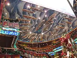 Costa Fortuna is a cruise ship for the Italian cruise line Costa Crociere built in 2003 on the same platform as Carnival Cruise Lines' Destiny class. She was inspired by the Italian steamships of the past. Models of these ships are on display in the ship's public areas. In the atrium, models of the 26 past and present ships of Costa's fleet were displayed upside down, on the ceiling, up to, and including, Costa Fortuna herself. She was refurbished between 10 and 16 December 2018 in Singapore and was re-positioned back to Genoa, Italy in March 2019.