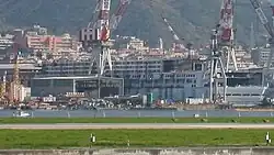 The bow section of Costa Pacifica was built at the Fincantieri Palermo shipyard and was launched on 24 July 2007. The section was then towed to Fincantieri's Sestri Ponente in August 2007 for further work, which also marked the announcement of the ship's name.[7] She was launched at Fincantieri's Sestri Ponente shipyard on 30 June 2008.[8] She returned to Sestri Ponente from her sea trials on 30 March 2009, for the fitting-out process.[9] Almost 3,000 workers helped in the construction of Costa Pacifica.[2]