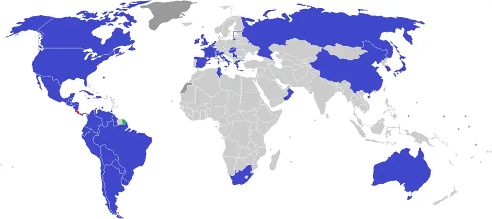 Map of the countries that have played at least one match against Costa Rica so far in the decade: