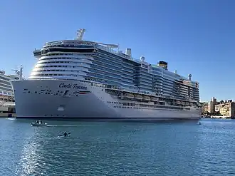 Costa Toscana is an Excellence-class cruise ship currently operated by the Italian cruise line Costa Cruises, a subsidiary of Carnival Corporation & plc. The ship was built in 2021. Costa Toscana has a sister ship, Costa Smeralda, which had been delivered in 2019.[4] At 186,364 gross tonnage (GT), she is the largest ship commissioned for and to ever operate for Costa, and the ninth-largest cruise ship in the world, as of 2024.[5]