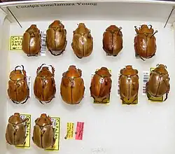 Cotalpa conclamara, the Texas goldsmith beetle, is a species of shining leaf chafer in the family Scarabaeidae.[1][2][3][4]