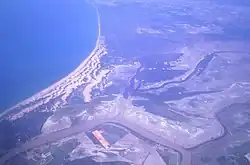 The geological profile of Doñana National Park reflects the development over several hundred thousand years of a deep aquifer and geomorphological features that have enhanced the biodiversity of the wildlife habitats presently found there. After the end of the last glacial period, the area was covered by freshwater and brackish marshes, ponds and sand dunes,[6] with some marine intrusions caused by high-energy events such as tsunamis and large storms. A period of comparatively rapid rise in global sea level during the first part of the Flandrian interglacial was associated with the melting of the paleoglaciers, and reached its maximum level 6,500–7,000 years ago. At this time, Doñana National Park and the surrounding areas were flooded, and a lagoon, later called Lacus Ligustinus by the Romans, was formed. The pace of infilling of the lagoon has increased over the last 6,000 years, along with accelerated growth of sandspits and the creation of new inland marshes and wetlands. The extensive marshes of Doñana National Park now have a flat topography, with some inland depressions occupied by temporary or permanent wetlands, locally called 'lucios'.[7] The whole area is protected by the Doñana spit, a wide sandy littoral barrier with mobile dune systems growing toward the southeast.[8]