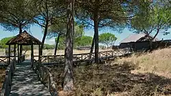 - La Plancha, a reconstructed antique village with marshland cabins[63][64] on the right bank (west side) of the Guadalquivir, last lived in in the 1980s.[65] From La Plancha, one can access the Llanos de Velázquez (Velázquez Flats) and Llanos de la Plancha (La Plancha Flats), where there are natural observatories.