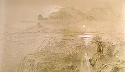 Church was a member of the Hudson River School, which stressed the need to experience the natural world directly in order to depict the same subjects on canvas.[9] Church made many preparatory sketches "on the spot" of his travels throughout South America, including of Cotopaxi, in order to produce the multiple, dramatic canvases of the subject from the 1850-1860's back in Church's New York studio.[9][10]