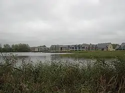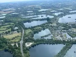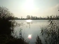 Shorncote Reedbed is at the north-east corner, towards South Cerney (Lakes 84 and 85).[15] It is designed to attract wetland birds, and has several linear islands which maximise the area of available reed fringe. Bittern, reed bunting, water rail, common snipe and reed warbler are recorded as visiting this refuge. There have also been sightings of otter and water vole. There are two bird hides. The footpath to the reserve from South Cerney is subject to frequent flooding from the adjacent Cerney Wick Brook and rising ground waters.[17]