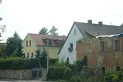 The historic Cotta village center, comprising Altcotta and Hebbelstraße, still includes five buildings constructed prior to the Gründerzeit building boom. Only the outer walls of a few other old houses, such as the Faustian winery, have survived. The former winery, located at Hebbelstraße 26 and built shortly after the Seven Years' War in 1764, features a round-arched gate and comprises several sub-buildings. Several old inscriptions on the building's history are attached to small plaques on the street-facing façade.[25] Although the winery has deteriorated over the last few decades, there are plans to rebuild it.