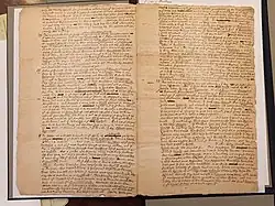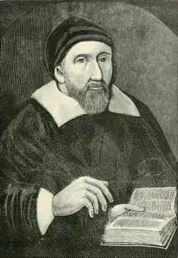 In 1693 Mather also began work on a grand intellectual project that he titled Biblia Americana, which sought to provide a commentary and interpretation of the Christian Bible in light of "all of the Learning in the World".[49] Mather, who continued to work on it for many years, sought to incorporate into his reading of Scripture the new scientific knowledge and theories, including geography, heliocentrism, atomism, and Newtonianism. According to Silverman, the project "looks forward to Mather's becoming probably the most influential spokesman in New England for a rationalized, scientized Christianity."[50] Mather could not find a publisher for the Biblia Americana, which remained in manuscript form during his lifetime. It is currently being edited in ten volumes, published by Mohr Siebeck under the direction of Reiner Smolinski and Jan Stievermann. As of 2023, seven of the ten volumes have appeared in print.[51]