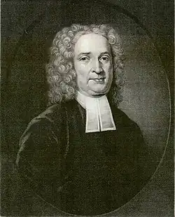 Cotton Mather FRS (/ˈmæðər/; February 12, 1663 – February 13, 1728) was a Puritan clergyman and author in colonial New England, who wrote extensively on theological, historical, and scientific subjects. After being educated at Harvard College, he joined his father Increase as minister of the Congregationalist Old North Meeting House in Boston, then part of the Massachusetts Bay Colony, where he preached for the rest of his life. He has been referred to as the "first American Evangelical".[2]